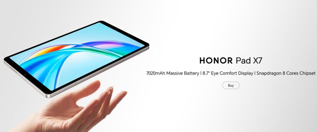 La Pad X7 est actuellement disponible à l’achat en Arabie Saoudite via la boutique en ligne de Honor. Le modèle avec 4 Go de RAM et 128 Go de stockage est proposé au prix promotionnel de 349 SAR (environ 93 $ ou 79 €). Après la fin de l’offre, le prix passera à 449 SAR (environ 119 $ ou 101 €).